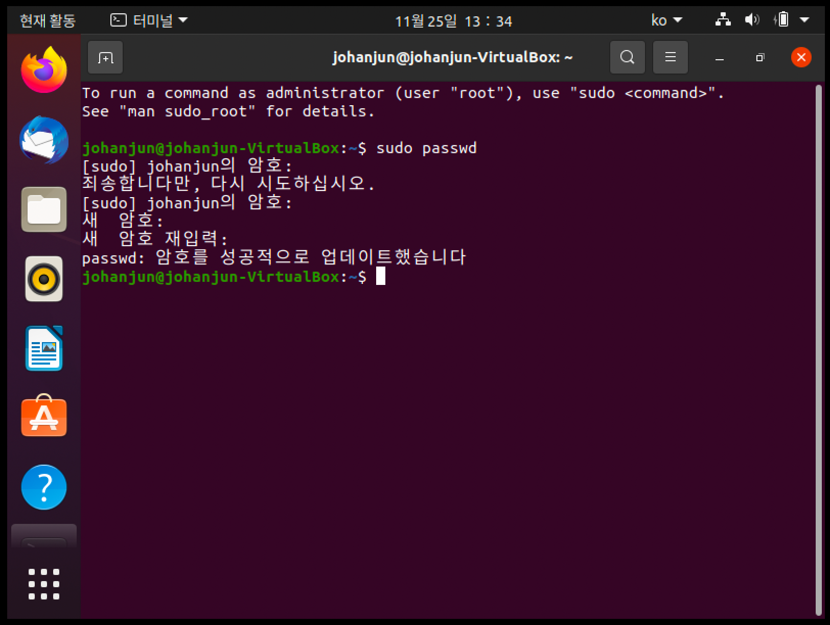 마지막으로, 시스템 Root의 패스워드까지 확인하면 리눅스 가상환경 설치가 완료된다.